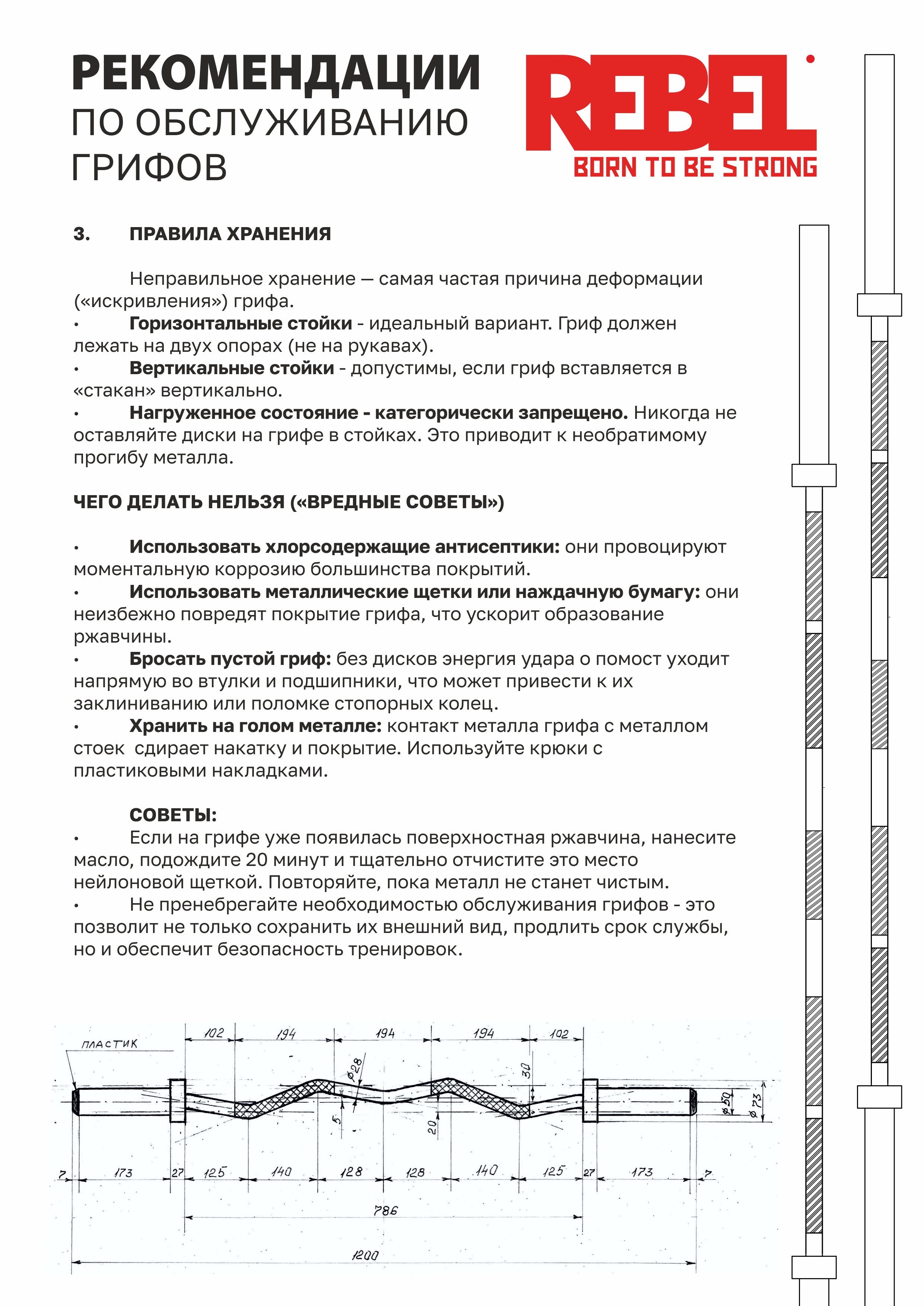 Длина грифа - 220 см. Вес грифа - 20 кг. Максимальная нагрузка - 256 кг.