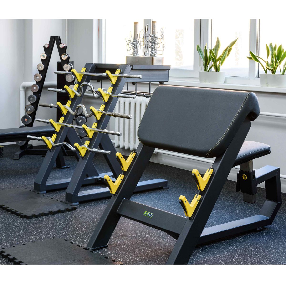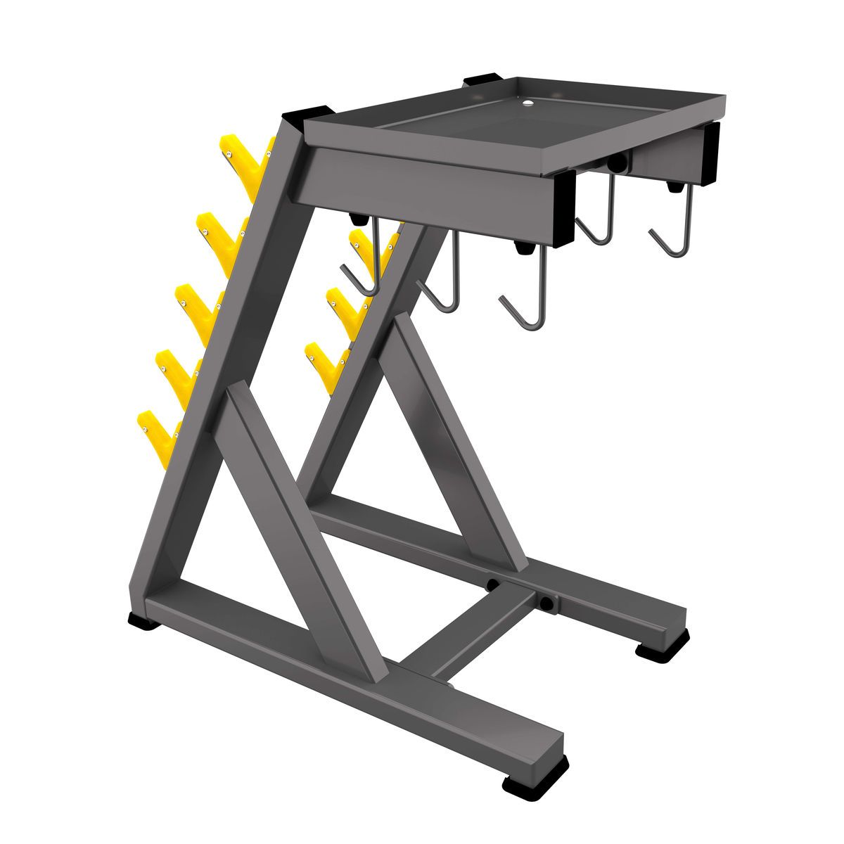Позволяет поддерживать порядок в зоне силовых тренировок, экономит место, обеспечивает безопасность хранения штанг и аксессуаров.