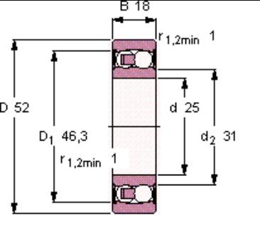 Неразъемный открытый самоустанавливающийся подшипник с контактными уплотнениями с двух сторон. Оптимизированная внутренняя конструкция, обеспечивающая повышенную грузоподъёмность. Имеет два ряда шариков, общую сферическую дорожку качения на наружном кольце, а также две глубоких дорожки качения на внутреннем кольце и сепаратор из стеклопластика, который центрируется по шарикам. Уплотнение из бутадиен-нитрильного каучука (NBR). Данный подшипник нечувствителен к угловым перекосам вала относительно корпуса, которые могут возникать, например, по причине деформации вала. Может применяться при температуре от -40 °C до +100 °C. Воспринимает радиальную нагрузку.